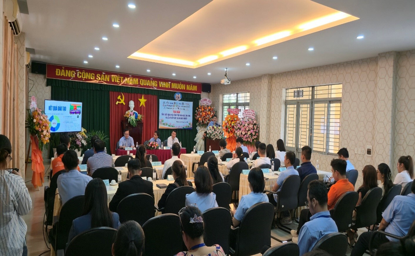 Nhằm tổng kết, đánh giá kết quả công tác thực tập của học sinh-sinh viên (HSSV) năm học 2024-2025, đồng thời thắt chặt hơn mối quan hệ hợp tác giữa Nhà trường và Doanh nghiệp. Chiều ngày 25/9/2025, Trường Cao đẳng Công nghệ cao Đồng Nai (Trường) đã tổ chức thành công buổi Tọa đàm tổng kết công tác thực tập năm học 2024–2025 và Lễ ký kết hợp tác giữa Trường và Doanh nghiệp. Tham dự chương trình có ông Đặng Đình Anh – Phó Trưởng phòng GDNN - Sở Giáo dục và Đào tạo, Ban Giám hiệu Nhà trường, đại diện 18 doanh nghiệp, cùng các thầy cô lãnh đạo Phòng, Khoa, Bộ môn, các em HSSV thực tập tiêu biểu đại diện cho 1.473 HSSV (trong đó trung cấp 1200 học sinh, cao đẳng 273 sinh viên) tham gia thực tập tại 340 doanh nghiệp trong năm học 2024-2025.