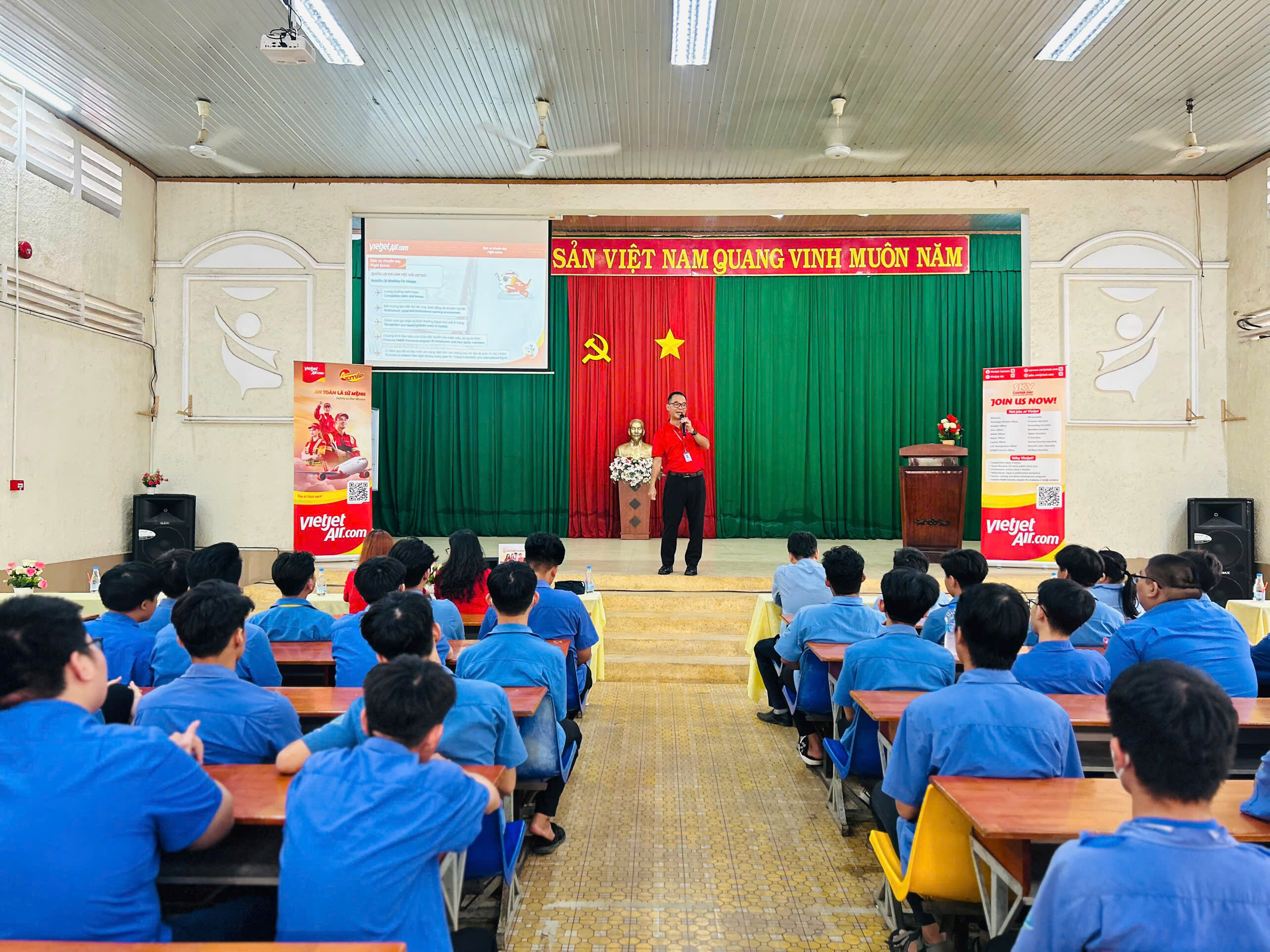 Tại chương trình, Anh Tống Viết Bảy-Phó giám đốc nhân sự, đại diện Công ty Cổ phần Hàng không Vietjet đã chia sẻ nhiều thông tin thiết thực về nhu cầu tuyển dụng, tiêu chuẩn nghề nghiệp, cũng như lộ trình đào tạo và làm việc tại các cảng hàng không, đặc biệt hướng tới phục vụ cho Cảng hàng không quốc tế Long Thành trong năm tới.