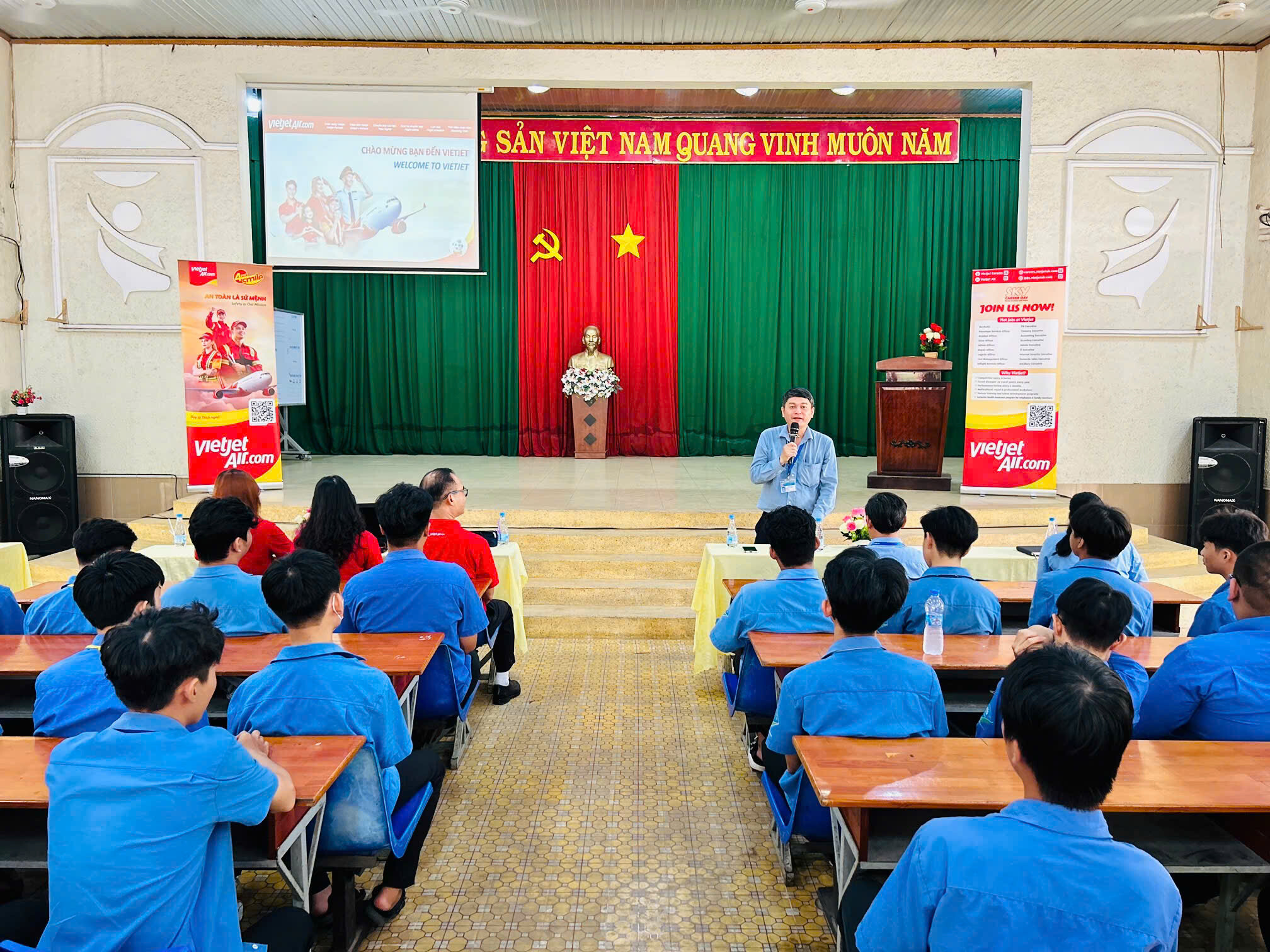 Trường Cao đẳng Công nghệ cao Đồng Nai phối hợp cùng công ty Cổ phần Hàng không Vietjet tổ chức buổi tư vấn Ngành/nghề lĩnh vực hàng không cho học sinh, sinh viên.