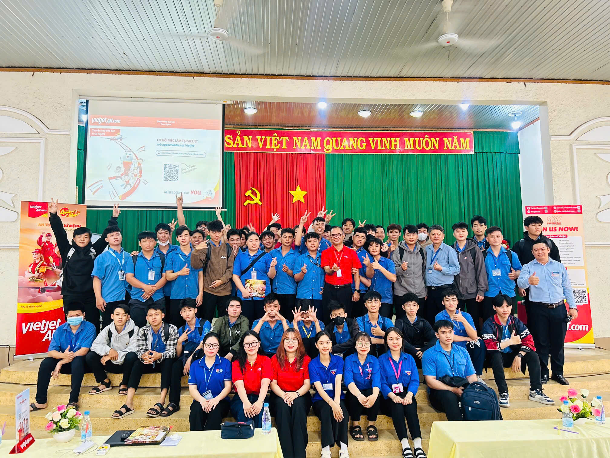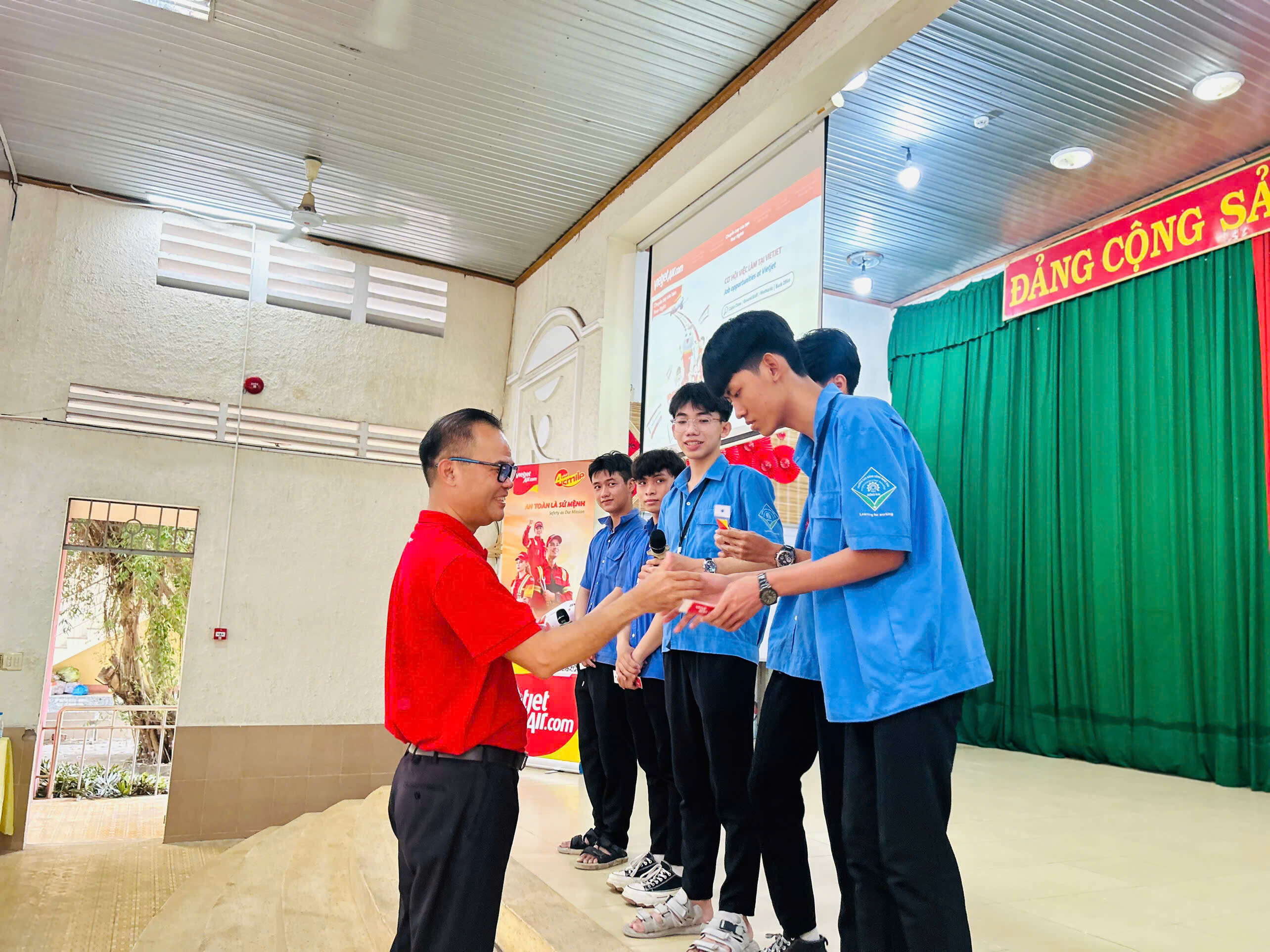 Sáng ngày 18/4/2025, Trường Cao đẳng Công nghệ cao Đồng Nai đã phối hợp với Công ty Cổ phần Hàng không Vietjet tổ chức buổi tư vấn ngành/nghề trong lĩnh vực hàng không cho 343 học sinh, sinh viên của nhà trường.