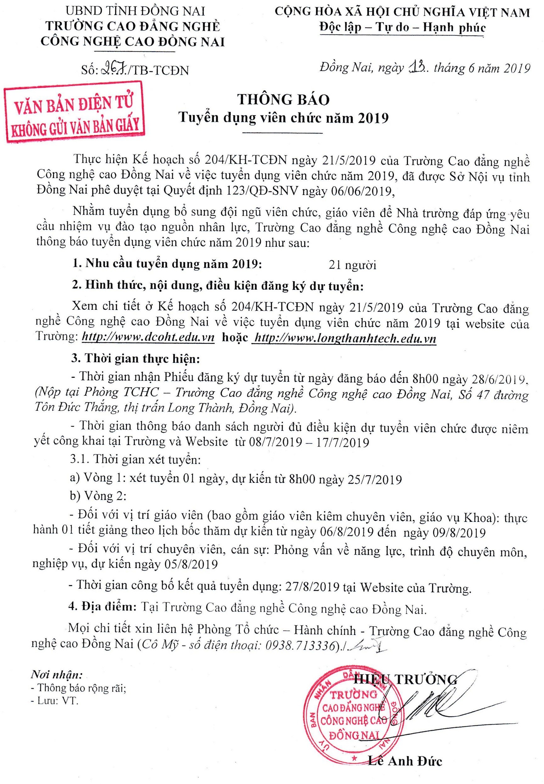 Tuyển viên chức Thông báo tuyển dụng viên chức năm 2019 04/07/2019 1,690 lượt xem Thông báo tuyển dụng viên chức năm 2019, thong bao tuyen dung vien chuc nam 2019 Kế hoạch tuyển dụng viên chức năm 2019 (Xem chi tiết) Tải mẫu đơn đăng ký (Tải mẫu) Chia sẻ: Facebook Zalo