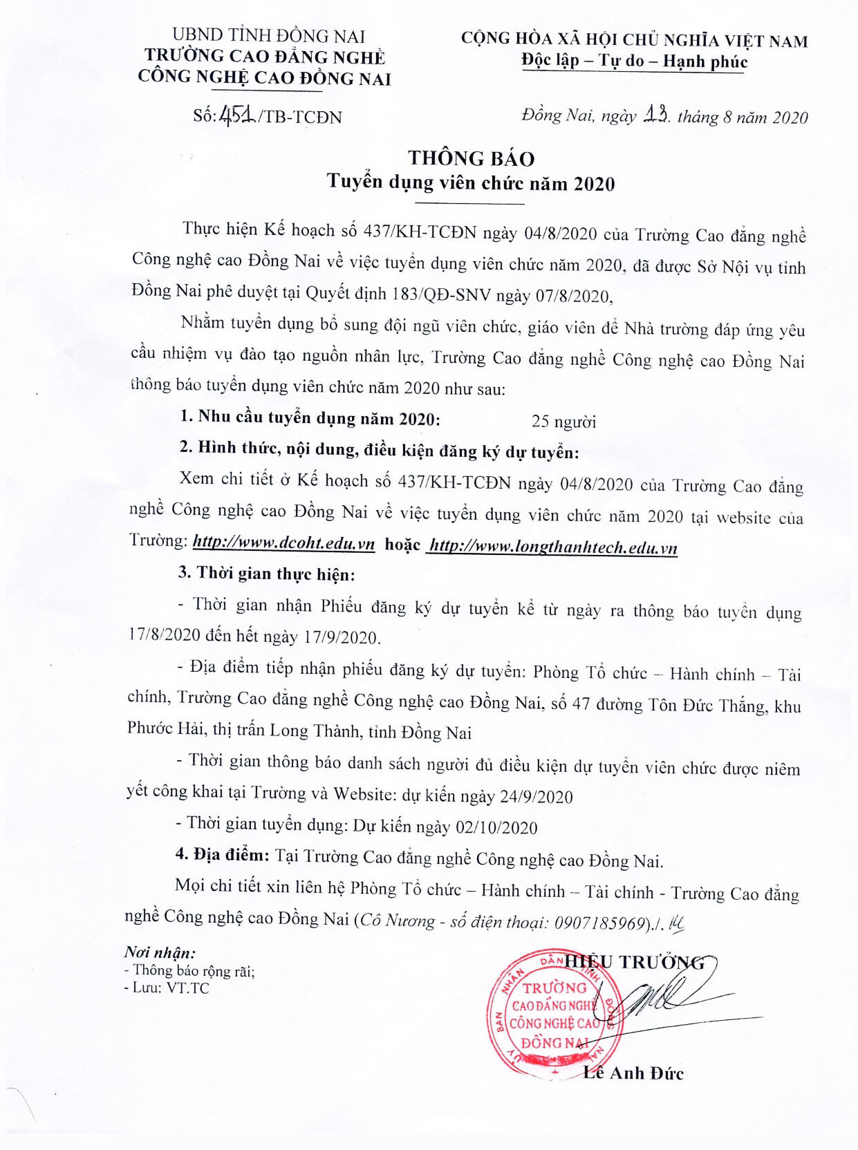 Tuyển viên chức Thông báo tuyển dụng viên chức năm 2020 14/08/2020 3,537 lượt xem Thông báo tuyển dụng viên chức năm 2020, thong bao tuyen dung vien chuc nam 2020 => Xem chi tiết kế hoạch và vị trí tuyển dụng ( Xem ) => Tải mẫu phiếu đăng ký dự tuyển (Tải mẫu) => Tải mẫu hồ sơ giảng dạy (Tải mẫu) => Tải mẫu sơ yếu lý lịch (Tải mẫu) Chia sẻ: Facebook Zalo