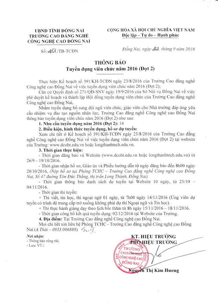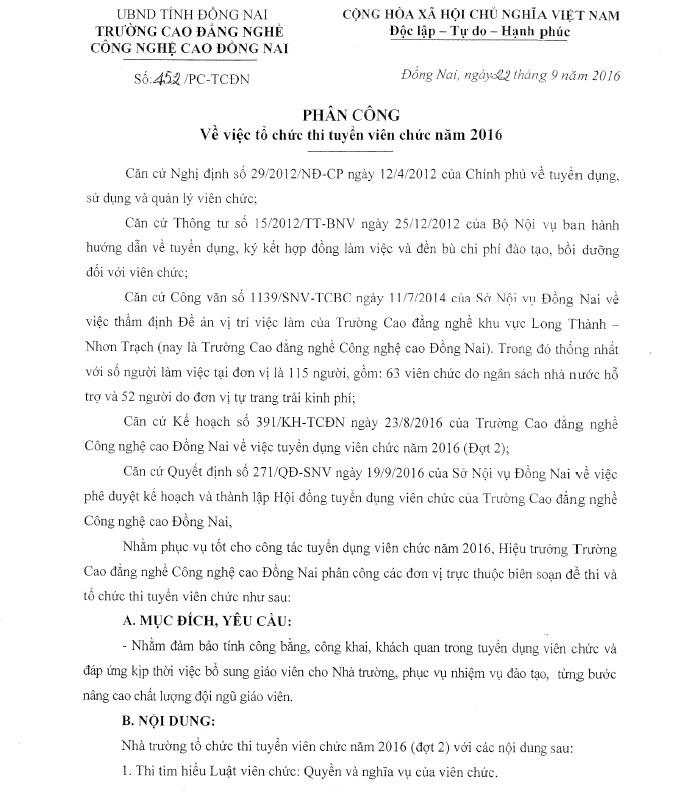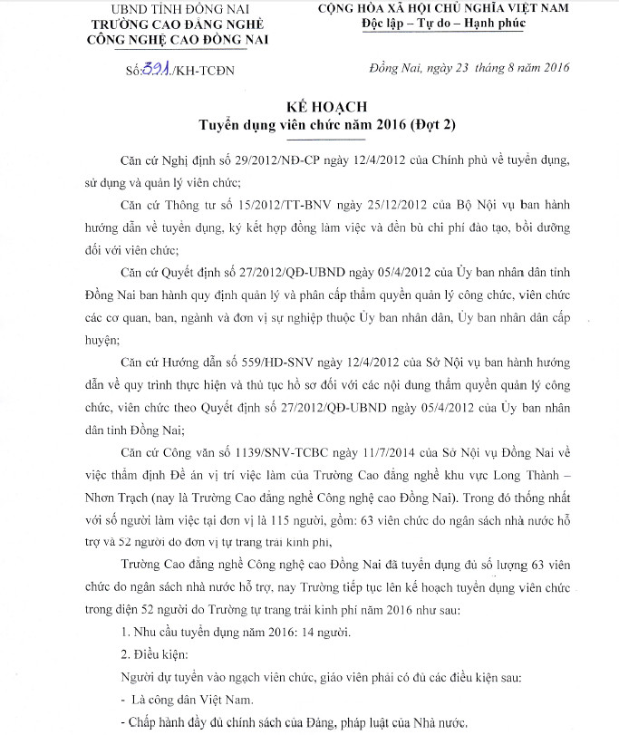 Tuyển viên chức Tuyển dụng viên chức năm 2016 (Đợt 2) 29/11/2016 1,539 lượt xem Thi tuyển viên chức 2016, thi tuyen vien chuc 2016 Chia sẻ: Facebook Zalo